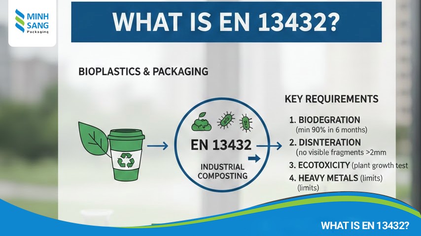 EN 13432 is the gold standard for identifying packaging that is fully biodegradable and environmentally safe. As green packaging trends accelerate between 2026 and 2030, compliance with this standard becomes a critical competitive advantage for businesses seeking credibility and access to demanding international markets. If you are looking for high-quality, internationally certified green packaging, Minh Sang Packaging is ready to support your sustainability journey.