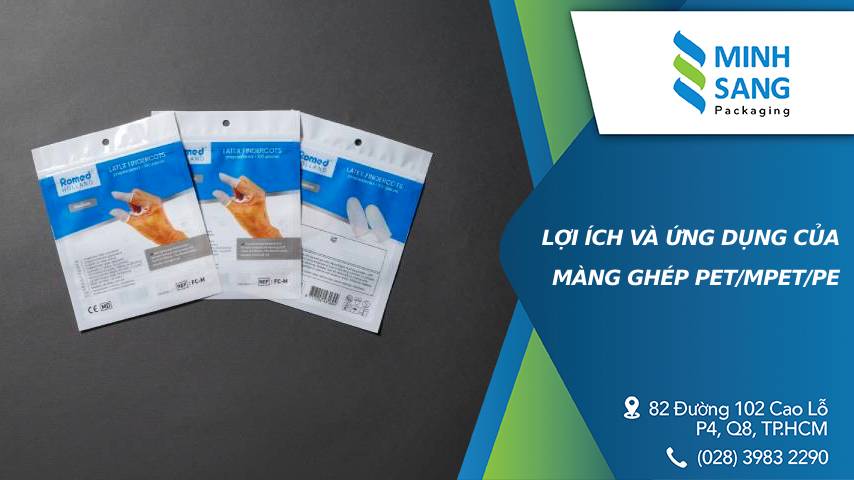 - Màng ghép PET/MPET/PE được sử dụng để đóng gói các sản phẩm điện tử như điện thoại di động, máy tính, máy ảnh, và các sản phẩm dược phẩm như viên nén, thuốc bột, và chất lỏng y tế.