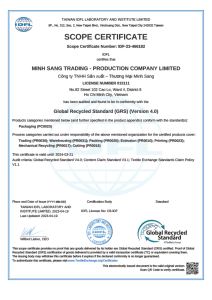 BAO BÌ MINH SANG ĐẠT CHỨNG NHẬN TIÊU CHUẨN TÁI CHẾ TOÀN CẦU (GRS)